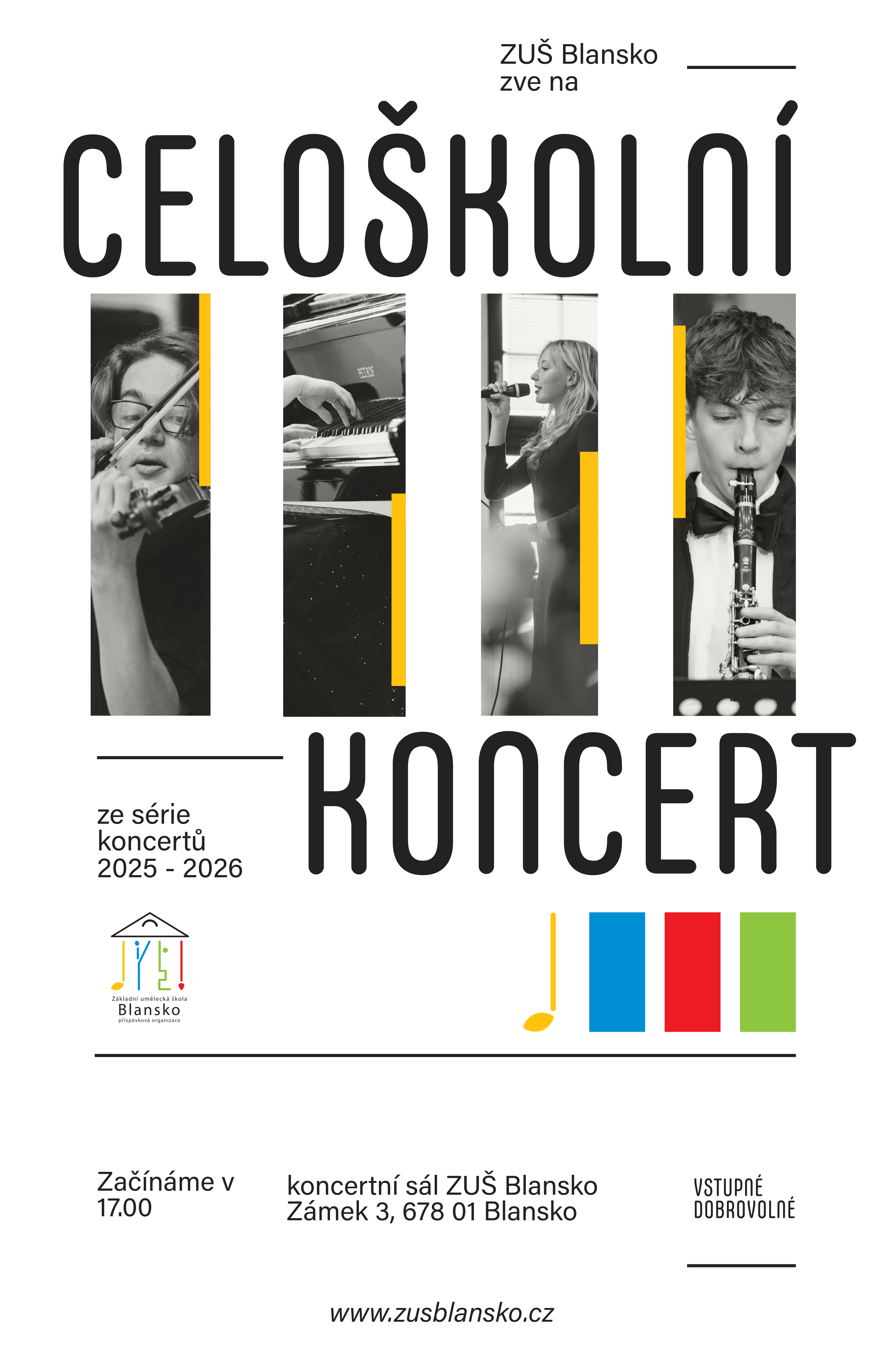 Akce se koná v koncertním sálu v 1. patře budovy ZUŠ Blansko, Zámek 3.