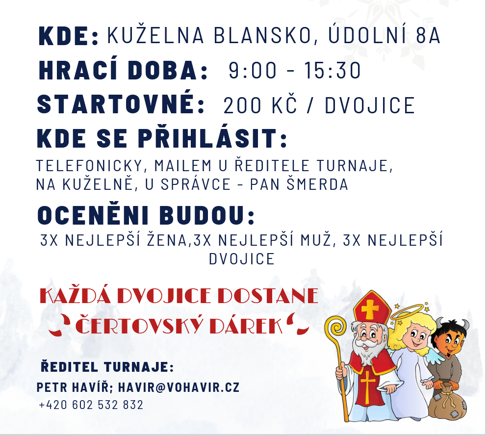 Mikulášský turnaj dvojic v kuželkách 2x20HS