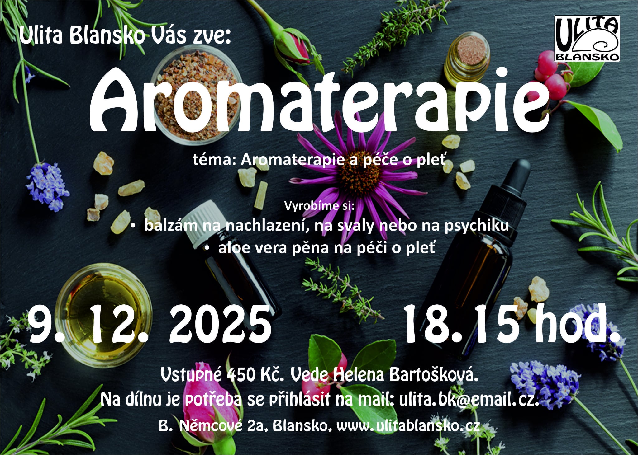 Worskhop, na kterém si vyrobíte si buď balzám na nachlazení, svaly či psychiku nebo aloe vera pěnu na péči o pleť. Vede Helena Bartošková.
