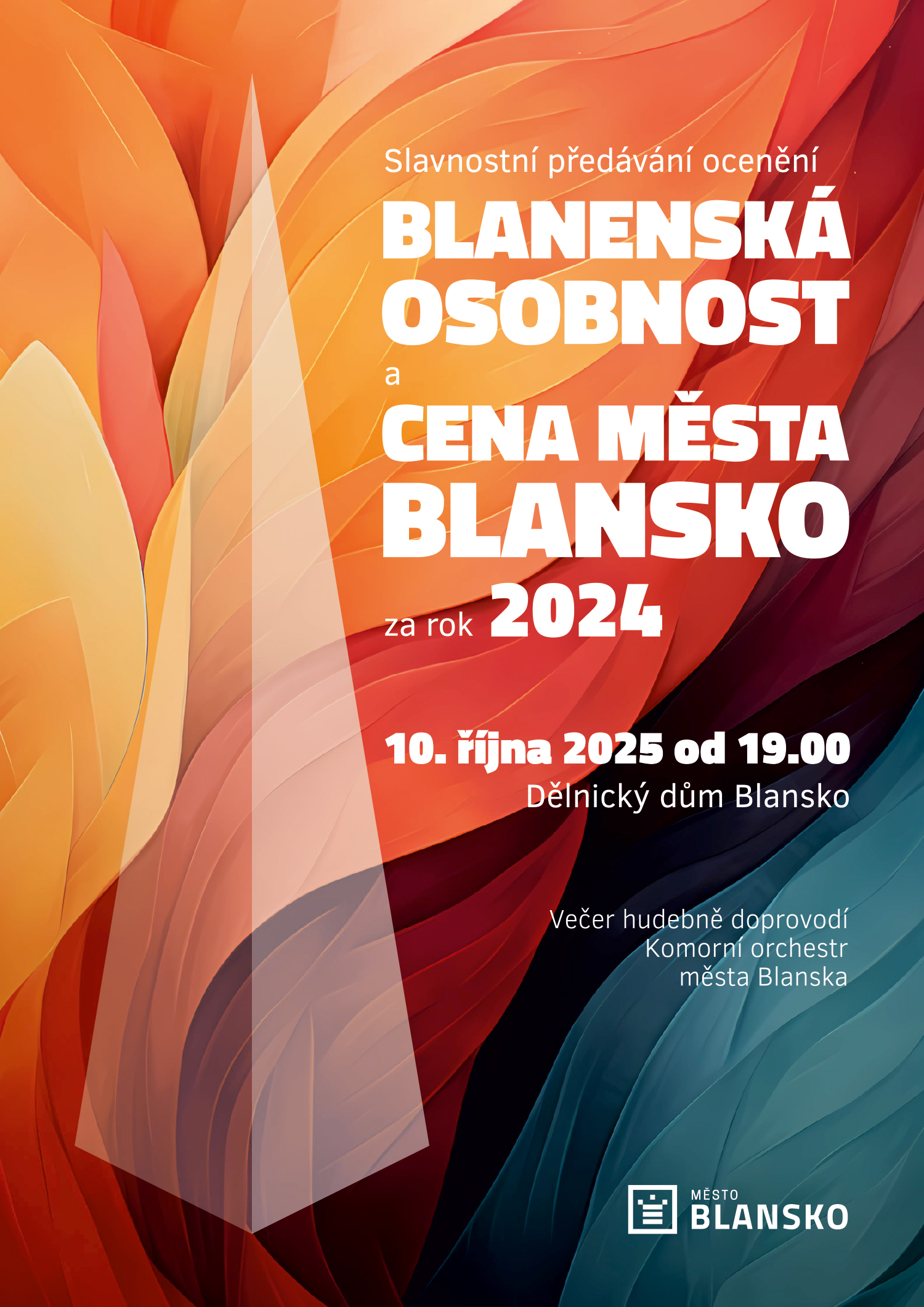 Město Blansko srdečně zve na slavnostní večer spojený s udílením ocenění Blanenská osobnost a Cena města Blansko za rok 2024.