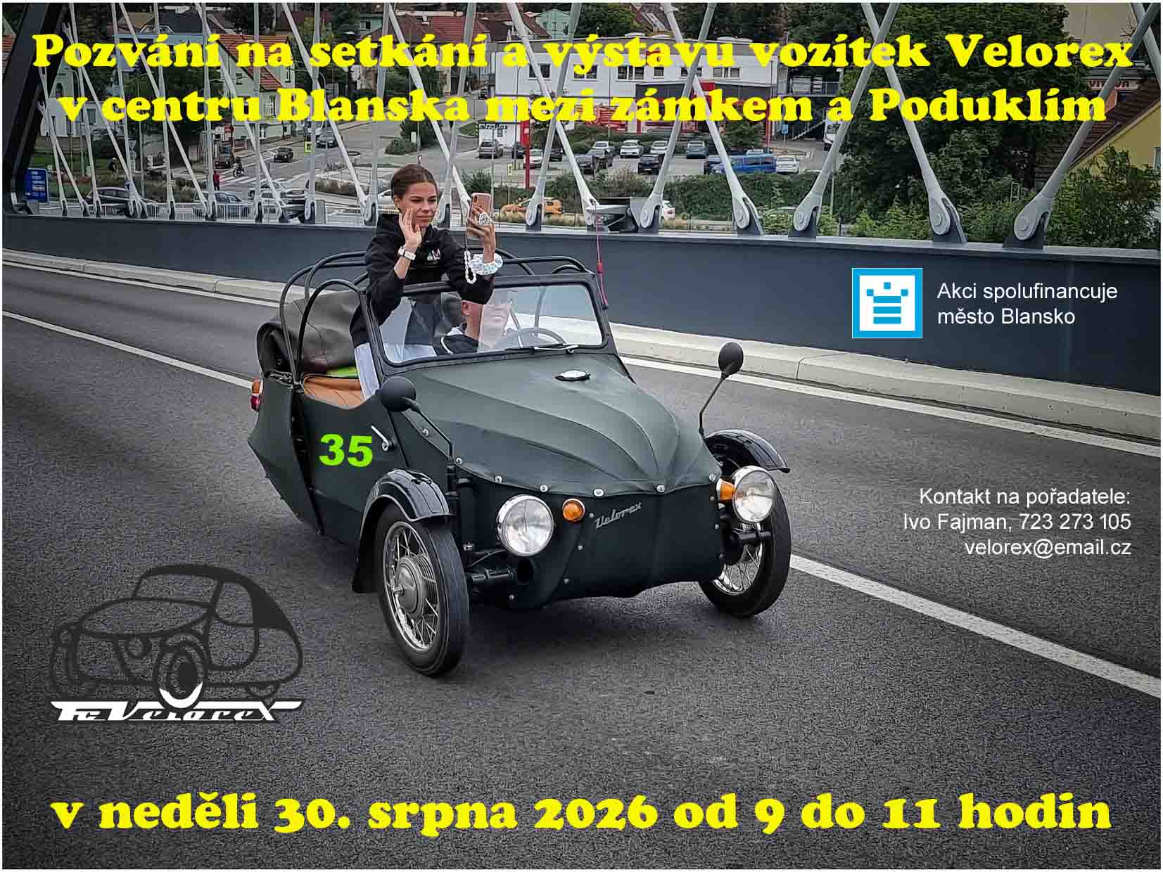 Setkání a výstava vozítek Velorex pro širokou veřejnost s následujícím programem: